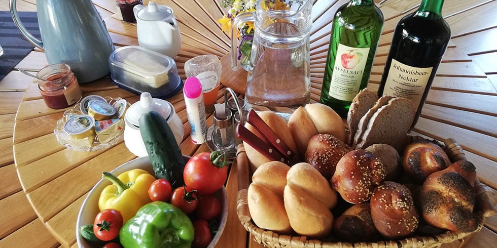 Bei einem ausgiebigen erweiterten Frühstück können Sie sich von unseren hausgemachten Produkten verwöhnen lassen. Frisch gebackenes Brot und Frühstücksgebäck, verschiedene Sorten Marmelade und Fleischprodukte - da ist sicher für jeden Geschmack das Richtige dabei.