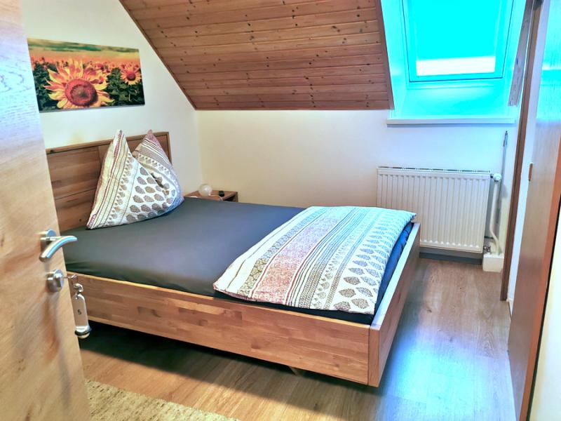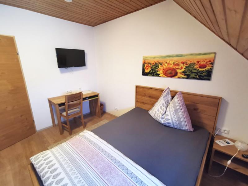 Das Gästezimmer ist gemütlich mit Vollholzmöbel eingerichtet, klimatisiert und befindet sich im Obergeschoss unseres Bauernhauses und ist mit Dusche, WC, TV ausgestattet.